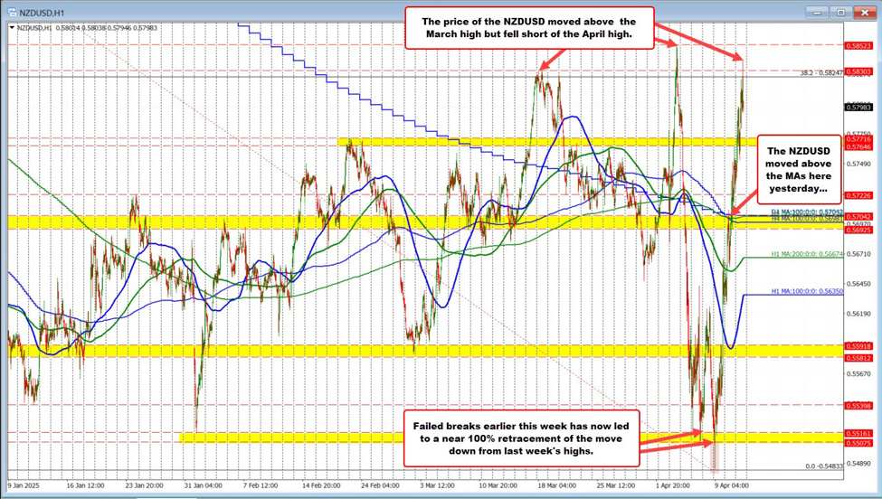 NZDUSD technicals The NZDUSD reversed sharply higher after bottoming at 0.5483 on Wednesday, following a steep decline from last week’s high at 0.5852. The rebound nearly erased the entire drop, with price reaching 0.5839 — just 13 pips shy of the recent peak. That’s a powerful roundtrip and a clear signal of heightened volatility. The […]