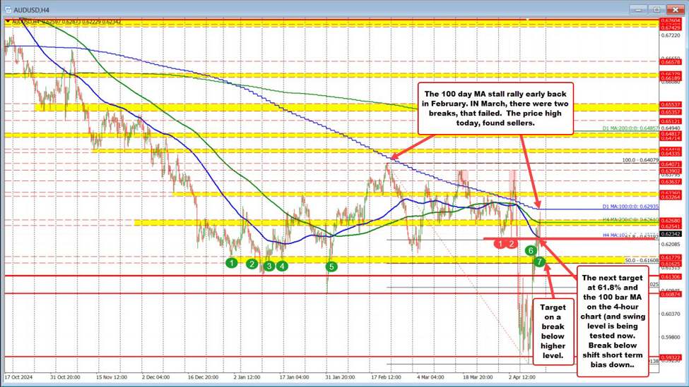 AUDUSD technicals The AUDUSD is once again struggling at familiar resistance near its 100-day moving average. Earlier today, the pair moved higher but stalled just shy of the 100-day MA — a level that also capped rallies in February and saw two failed breakouts in March. Sellers leaned against it again, reinforcing the barrier and […]