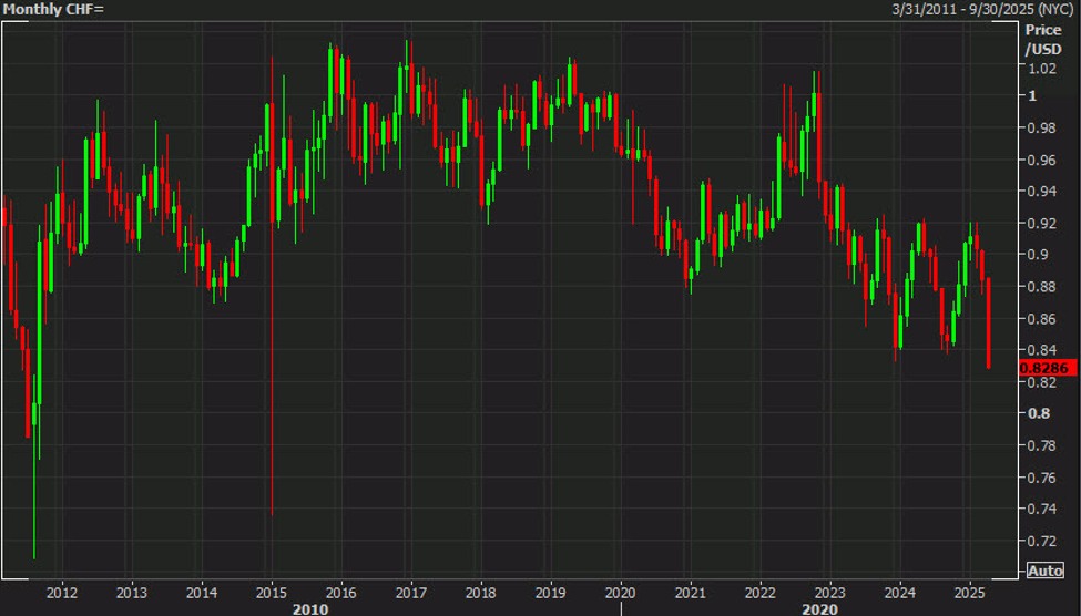 USDCHF monthly I can’t believe it’s been 10 years since the January 15, 2015 break of the EUR/CHF floor and all the drama around that. But in any case, USD/CHF is at its lowest since that fateful day. Excluding that brief period, its’ trading at the lowest since 2011. The is a rush into safe […]