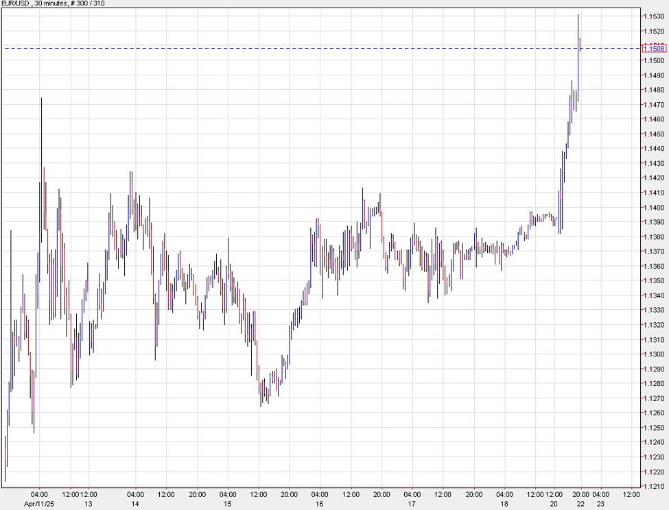 EUR/USD 30 mins It’s thin liquidity today in markets but it’s non-stop selling all the same. The euro is now up 116 pips the day to 1.1508 and touched as high as 1.1528. It’s the first time above 1.15 since November of 2021 as stops were run above 1.15. I feel like I’m writing the […]
