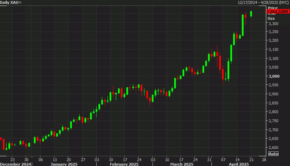 Gold is now up $75 on the day to a fresh record just above $3400. The monthly chart is harrowing as it goes parabolic. Here is what’s driving it: The global world order is breaking down The market wants safety from the US dollar Global economic growth indicators are worsening Trump is threatening the independence […]
