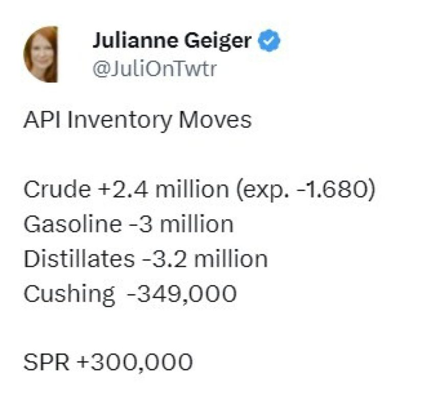 more to come — Expectations I had seen centred on: Headline crude +0.5mn barrels Distillates -1.2 mn bbls Gasoline -1.6 mn This data point is from a privately-conducted survey by the American Petroleum Institute (API). It’s a survey of oil storage facilities and companies The official report is due Wednesday morning US time. The two […]