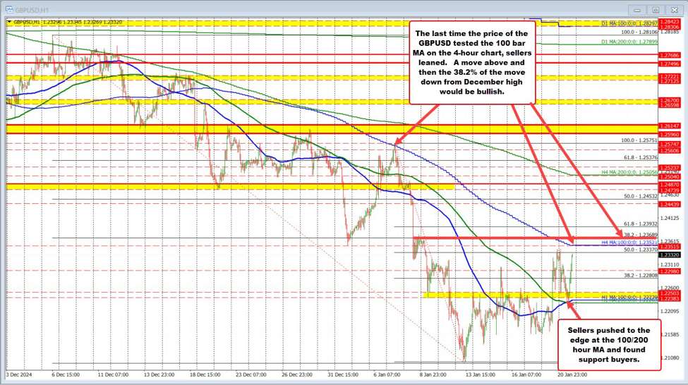 The GBP/USD moved lower during the Asian and European sessions but found support near the converged 100- and 200-hour moving averages (MAs). Sellers turned into buyers at this critical area, and the pair began to rotate back to the upside. The upward momentum has now pushed the price toward the 50% retracement level of the […]