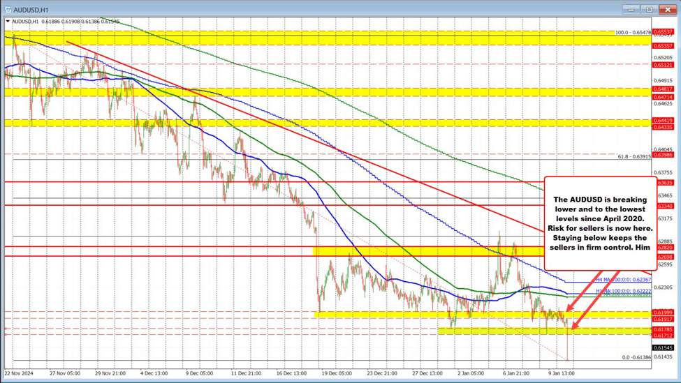 The AUDUSD is breaking below the 2022 and 2024 lows. On the last day of the trading year, the price moved to a low of 0.61785. That was just above October 2022 low and 0.6170. Yesterday, the price moved to 0.6171 but once again found support buyers. Breaking below those level opens the door for […]