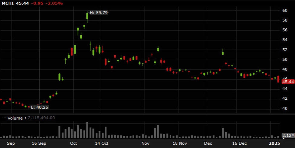 US-listed China ETFs are struggling today, erasing earlier gains. There was some optimism on the report about Trump softening tariffs but the President-elect later denied that report and China is back in the doldrums. The MCHI ETF is now 2% lower and at the worst levels since late September. MCHI ETF daily There are some […]