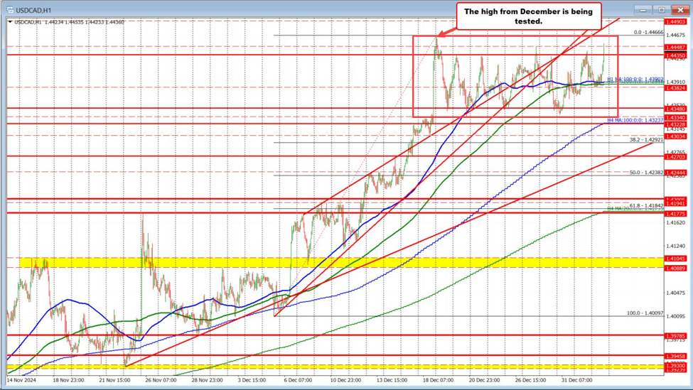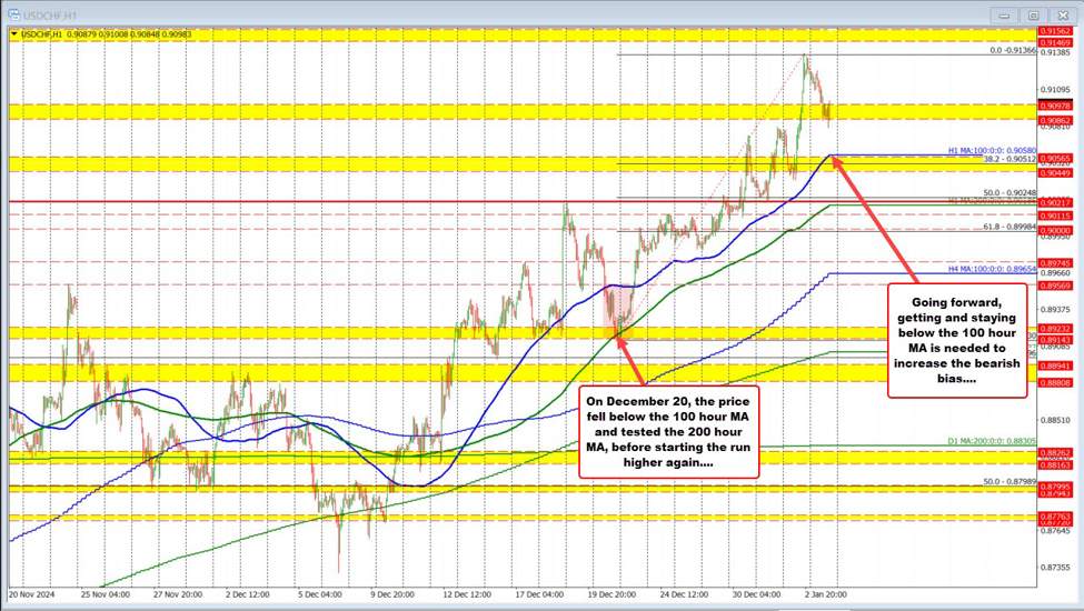 The USDCHF is lower on the day and testing a swing area going back to April and June 2024 between 0.9086 and 0.90978. If the sellers are to keep pushing, getting and staying below the high of that swing area (up to 0.9100 level) is required. On the downside, the rising 100-hour moving average comes […]