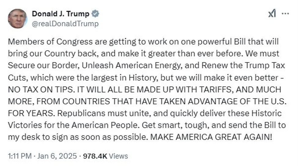 Trump on Twitter. Shouting out his tariff and tax cut policies. This article was written by Eamonn Sheridan at www.forexlive.com. Source link