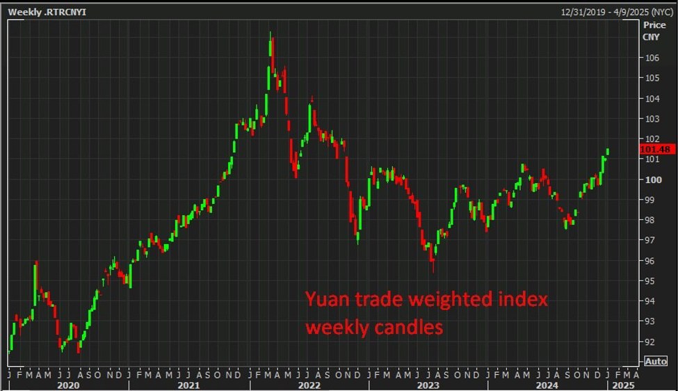 This builds from Eamonn’s post earlier: The yuan has hit its highest since mid-October 2022 (using its trade-weighted value) According to the CFETS, which is overseen by the PBOC, the dollar’s weighting in the yuan currency basket has been adjusted to 18.903%. That is down from 19.46% previously with the change having gone into effect […]