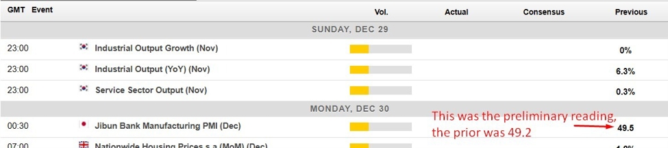 Jibun Bank Final PMI from Japan for December is due today. Flash Manufacturing December: 49.4 (in contraction for 6 straight months.) November Final 49.2 Background to this is that Japan’s manufacturing sector experienced a consistent contraction over the previous three months, as indicated by the Jibun Bank / S&P Global Manufacturing Purchasing Managers’ Index (PMI): […]