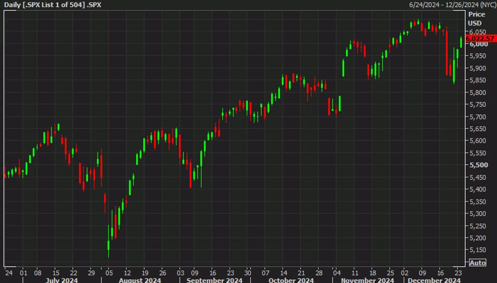 S&P 500 daily The shortened US equity market session on Christmas Eve is often a formality but Santa Claus delivered this year. The 0.7% rally yesterday in the S&P 500 was followed with 0.8% today and the post-Fed rout has now been largely erased. S&P 500 +1.1% Nasdaq Comp +1.4% (led by +6% for TSLA) […]