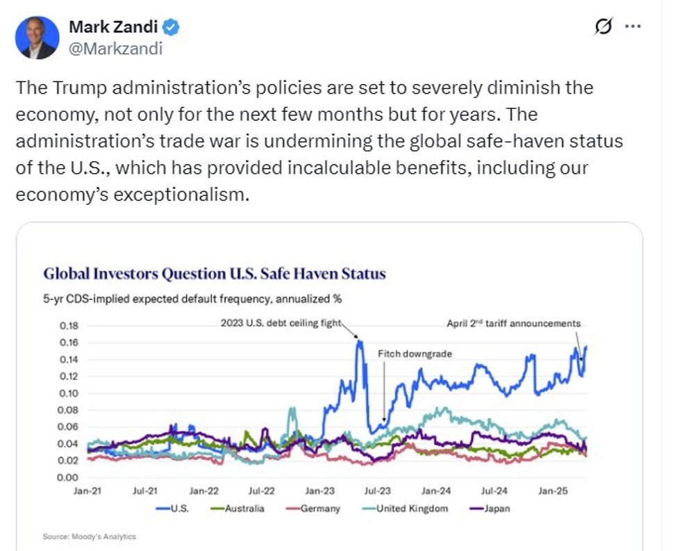 This is via Chief Economist at Moody’s Analytics, Mark Zandi: The Trump administration’s policies are set to severely diminish the economy, not only for the next few months but for years. The administration’s trade war is undermining the global safe-haven status of the U.S., which has provided incalculable benefits, including our economy’s exceptionalism. Its part […]